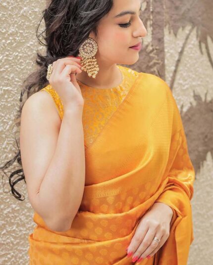 Yellow Color Latest Soft Banarasi Silk Saree with Golden Zari Work