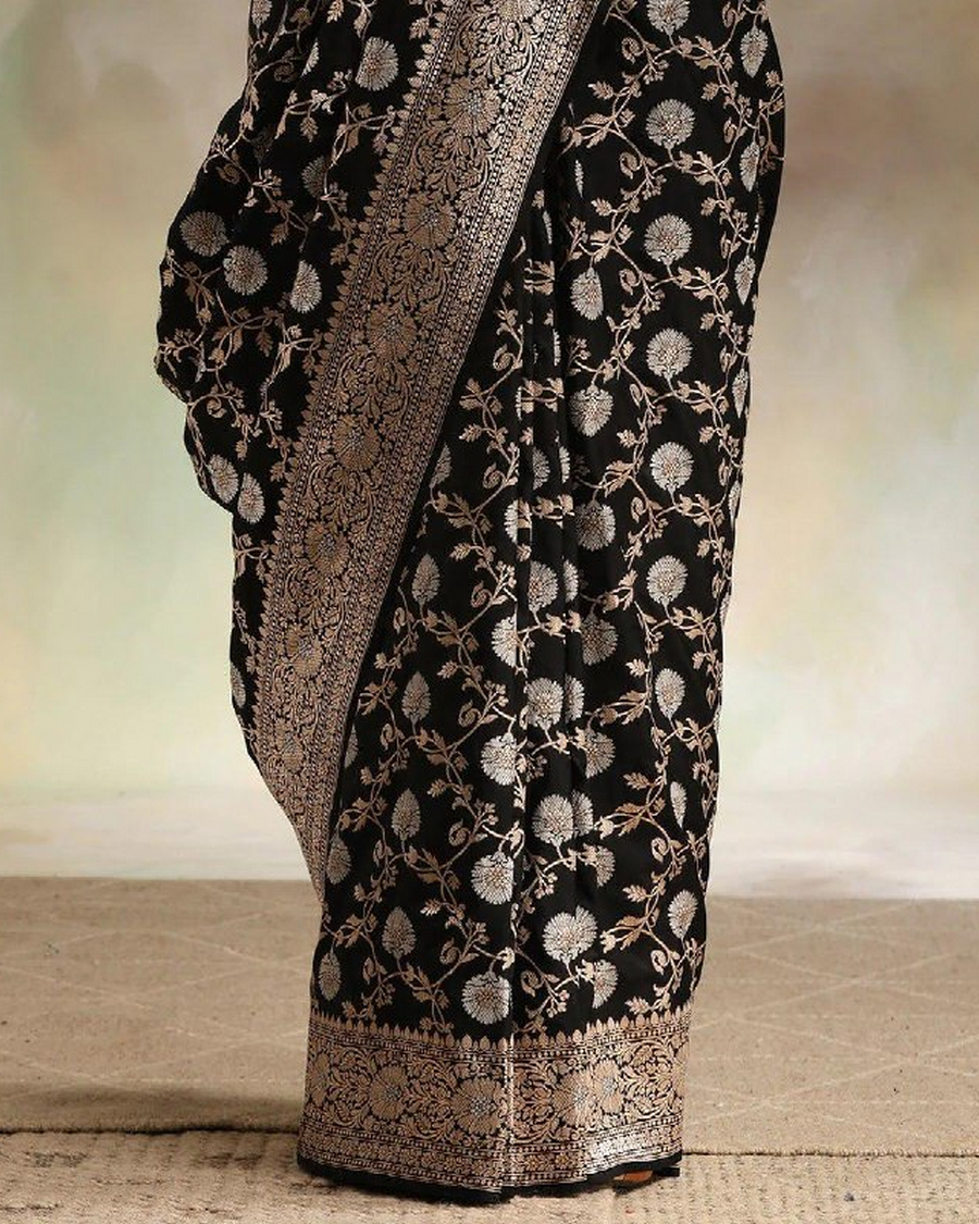 Black Color Hot Right Now Soft Banarasi Silk Saree with Classy Bloue Piece