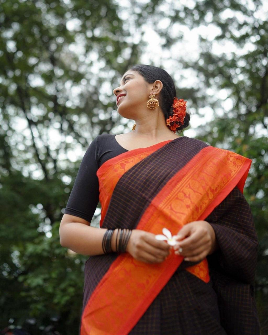 Brown And Orange Color Top Tier Soft Banarasi Silk Saree with Classy Bloue Piece