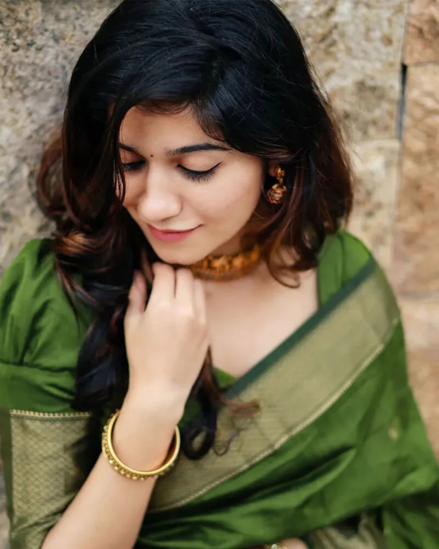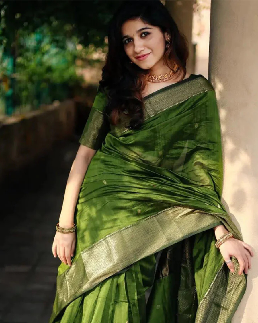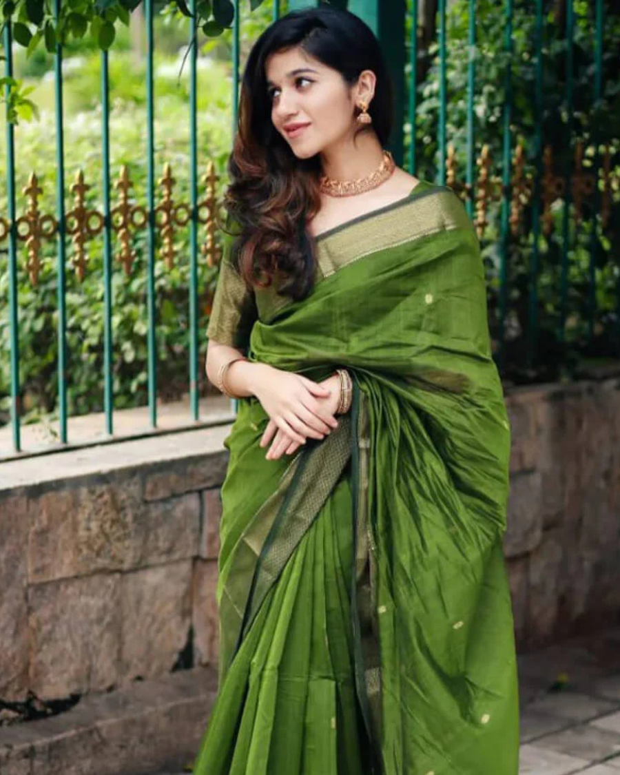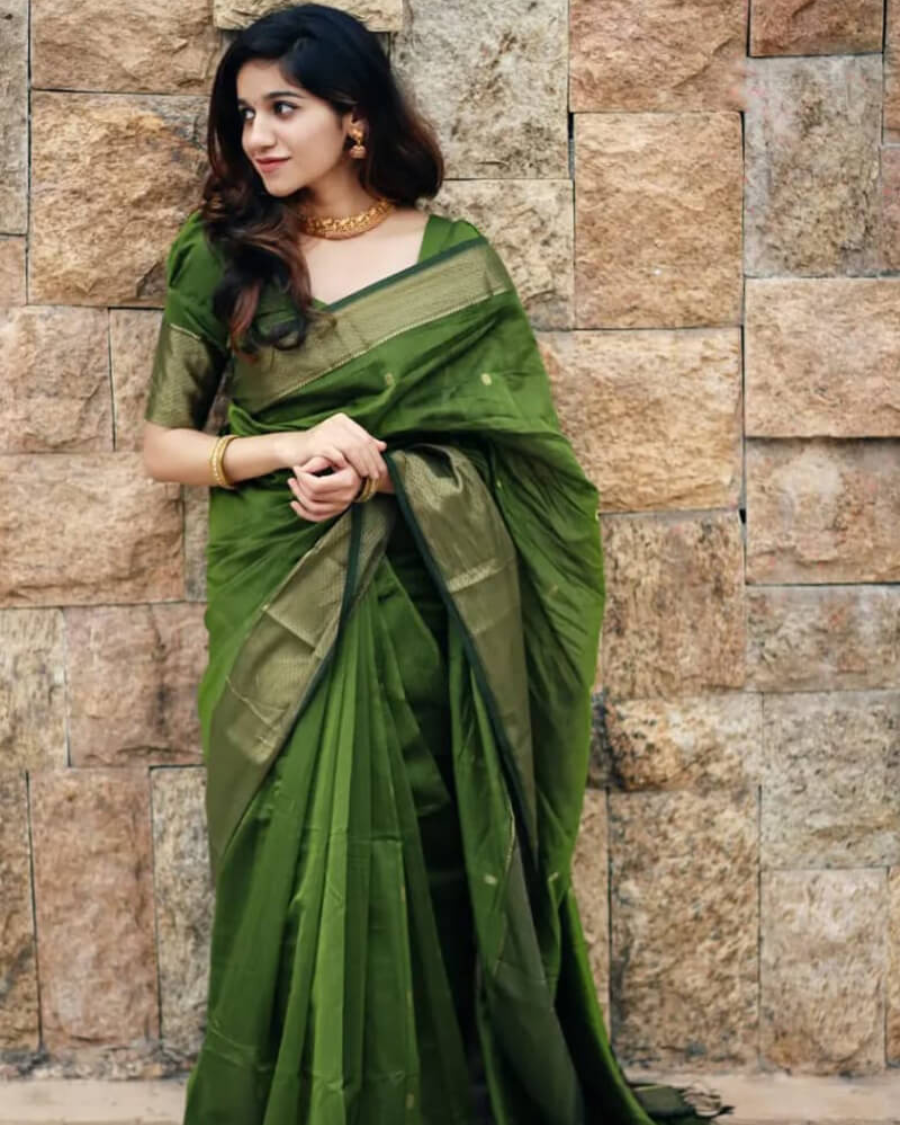Green Premium Cotton Silk Saree With Classy Blouse and tassels