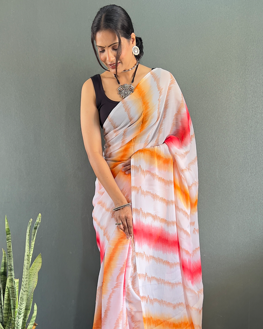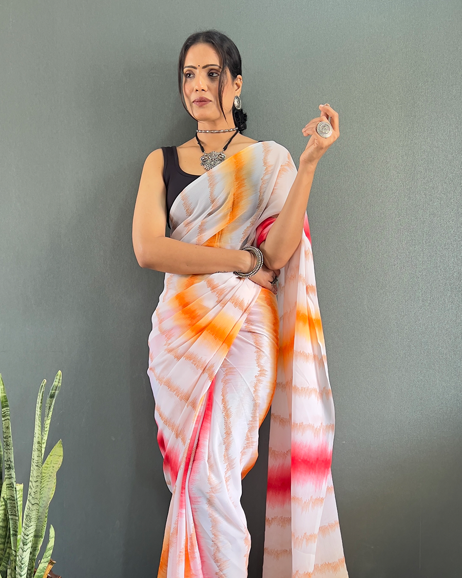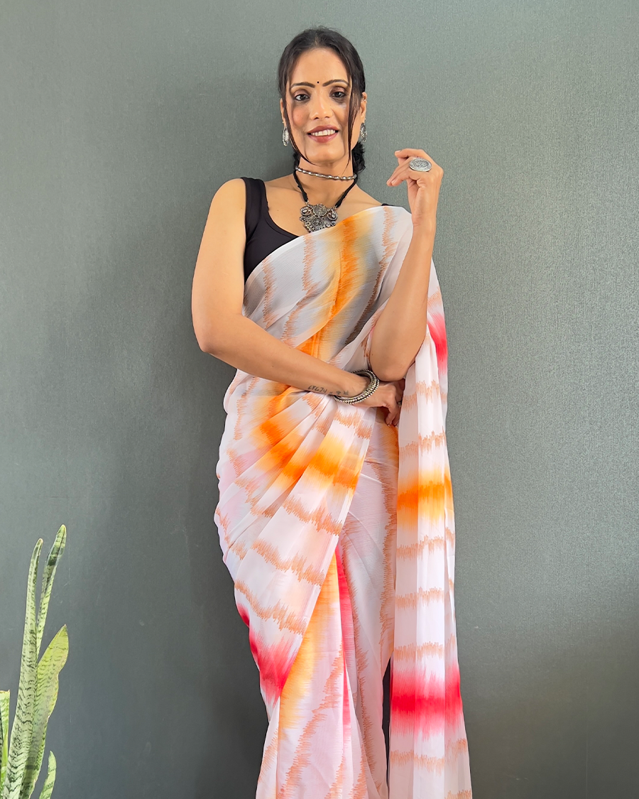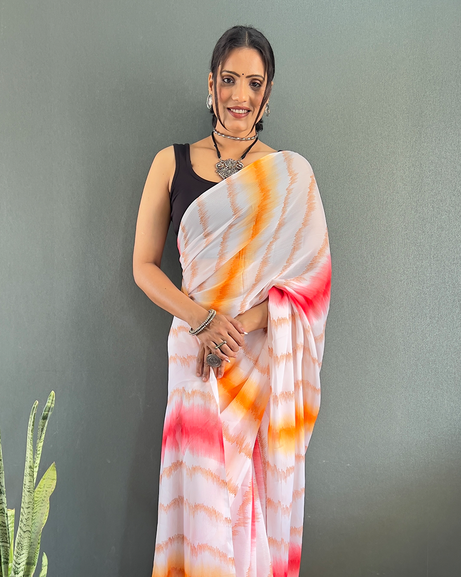 Light PeachColor 1-Minute Ready To Wear Georgette Saree With Blouse Piece