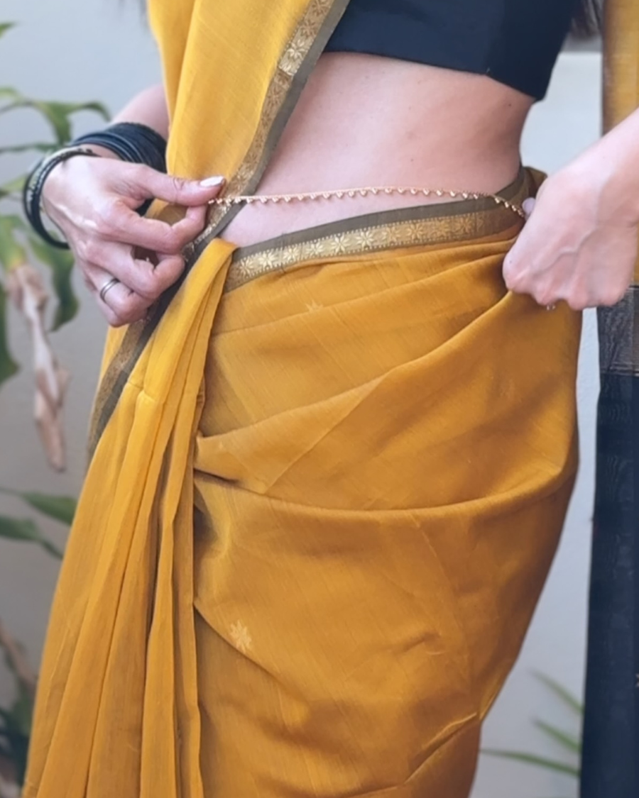 Mustard Yellow Premium Cotton Silk Saree With Classy Blouse and tassels