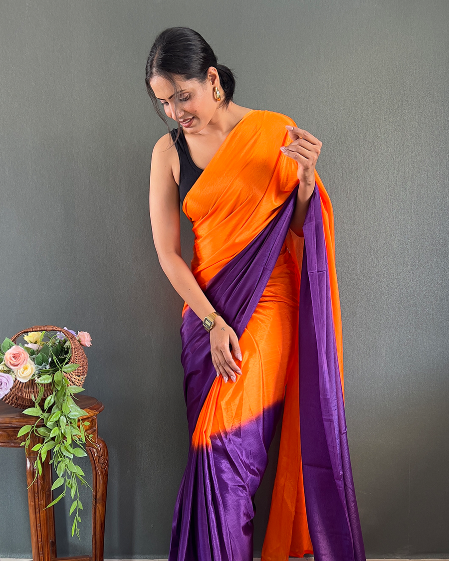 Orange And Purple Color 1-Minute Ready To Wear Georgette Saree With Blouse Piece