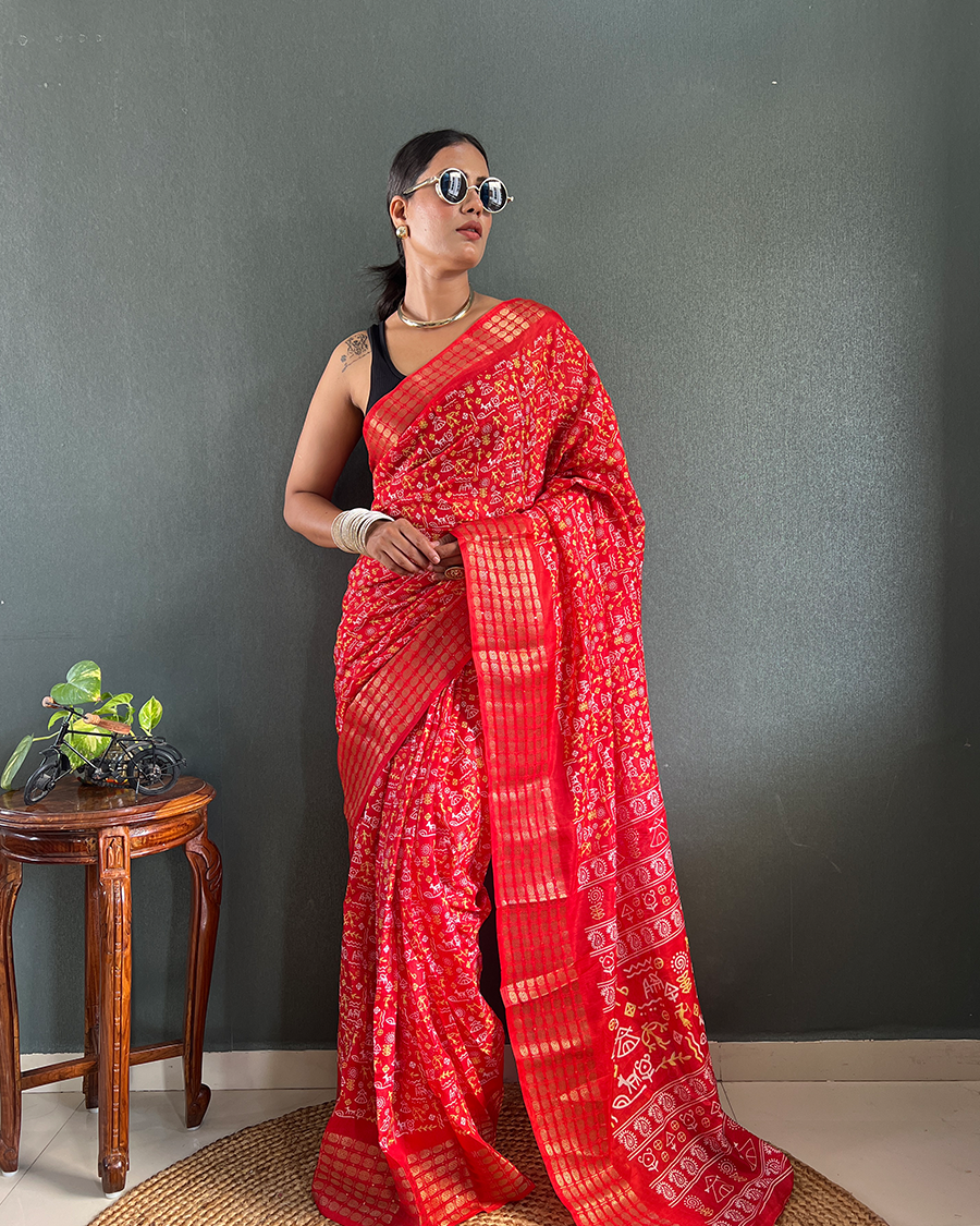 This Saree Is A Great Choice And A Must For Every Wardrobe. Embellished With A Beautiful Pattern, The Vintage Design Enhances The Royal Look Of The Saree. Made With An Intricate Technique, This Is A Heritage Of Its Kind. With A Rich Border Enveloping The Saree, It Is A Stellar Style Statement.