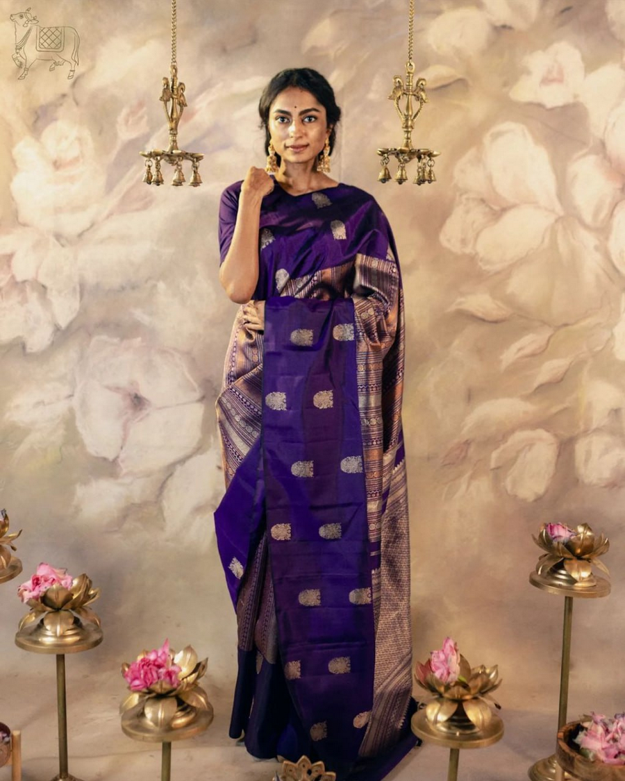 Purple Color Latest Arrival Soft Banarasi Silk Saree with Classy Bloue Piece