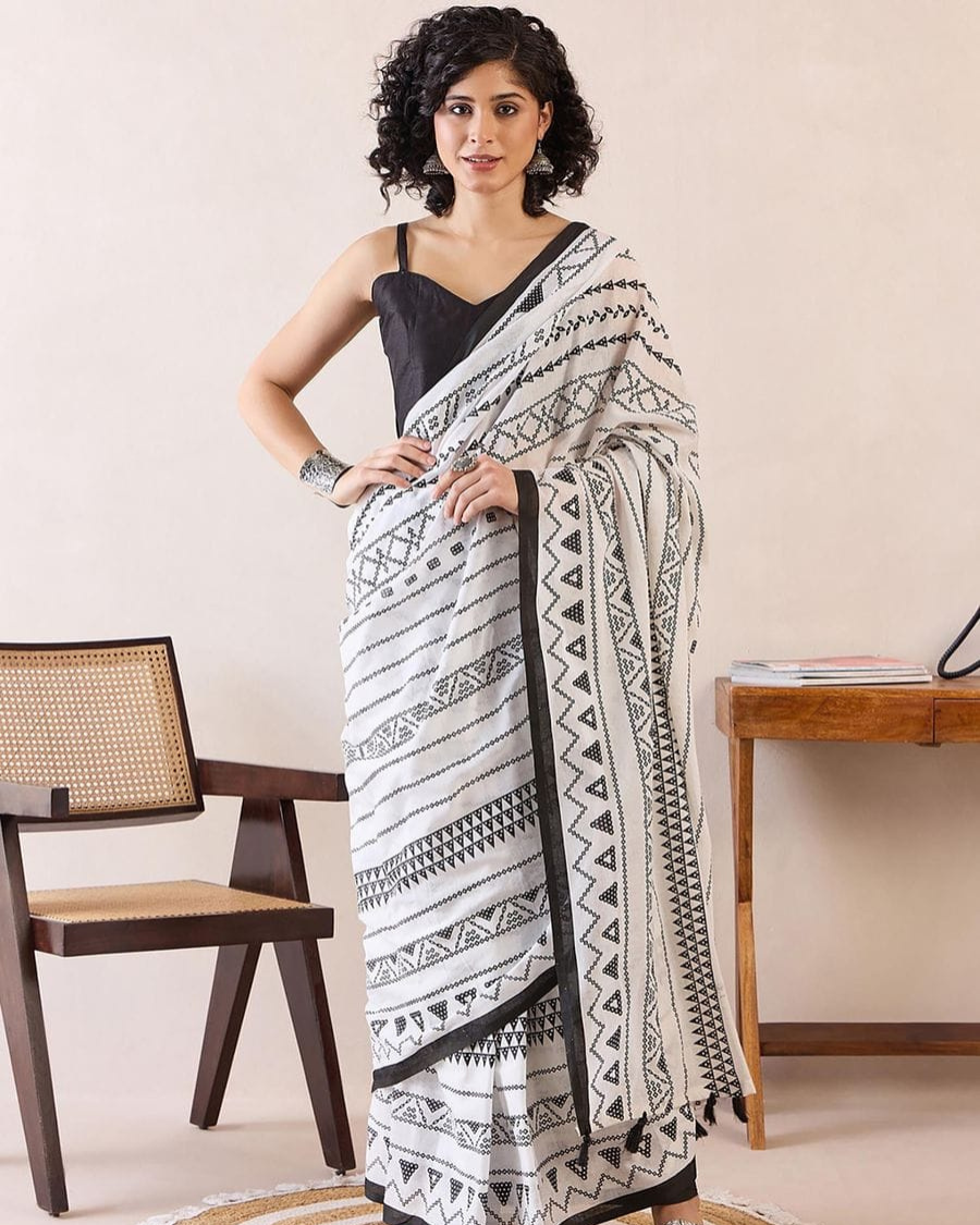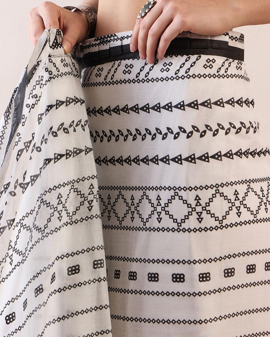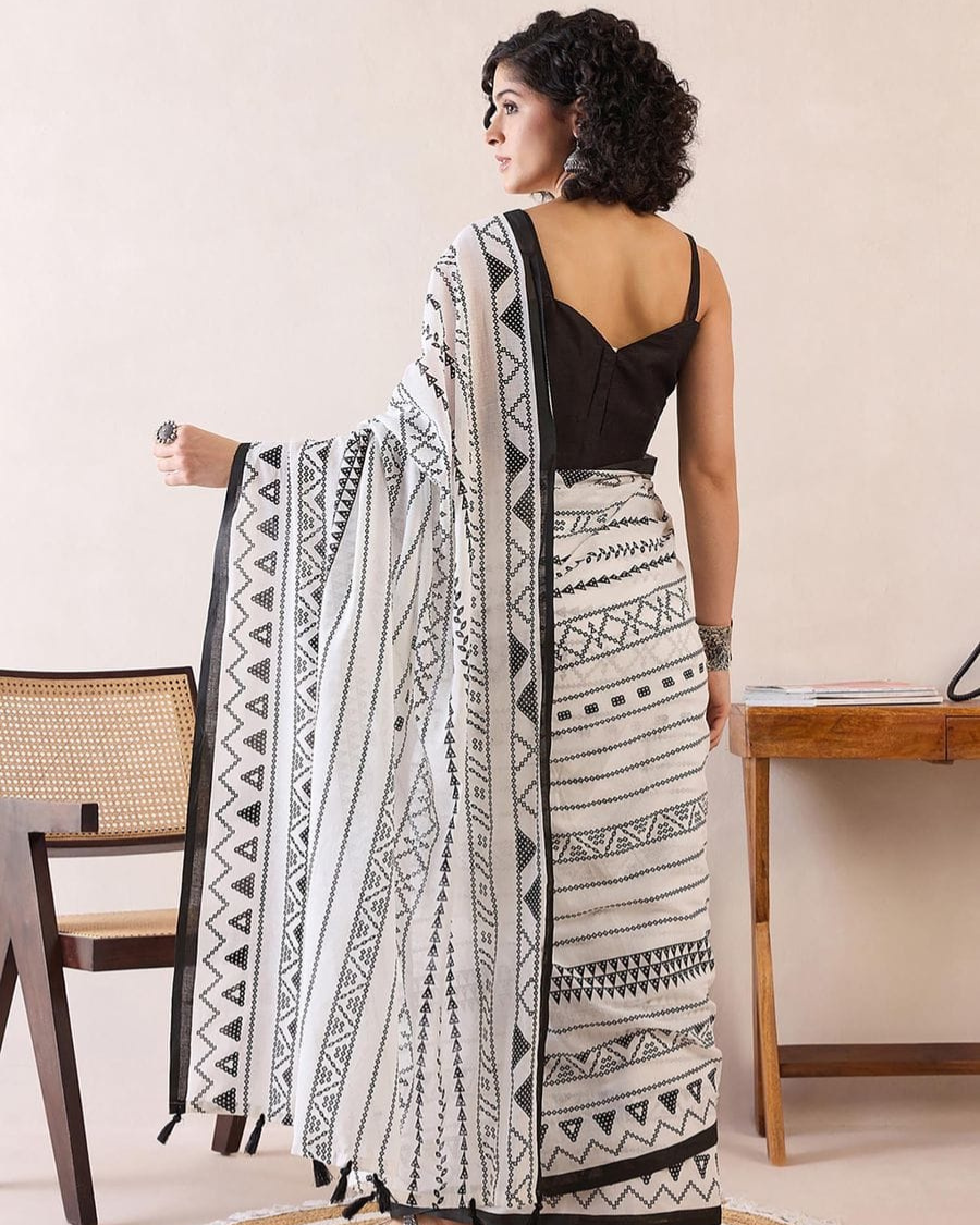 White Color Mulmul Cotton 1 – Minute Ready to Wear Saree with Pocket and Blouse Piece
