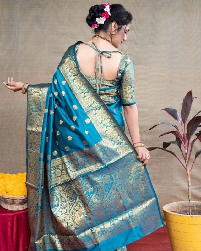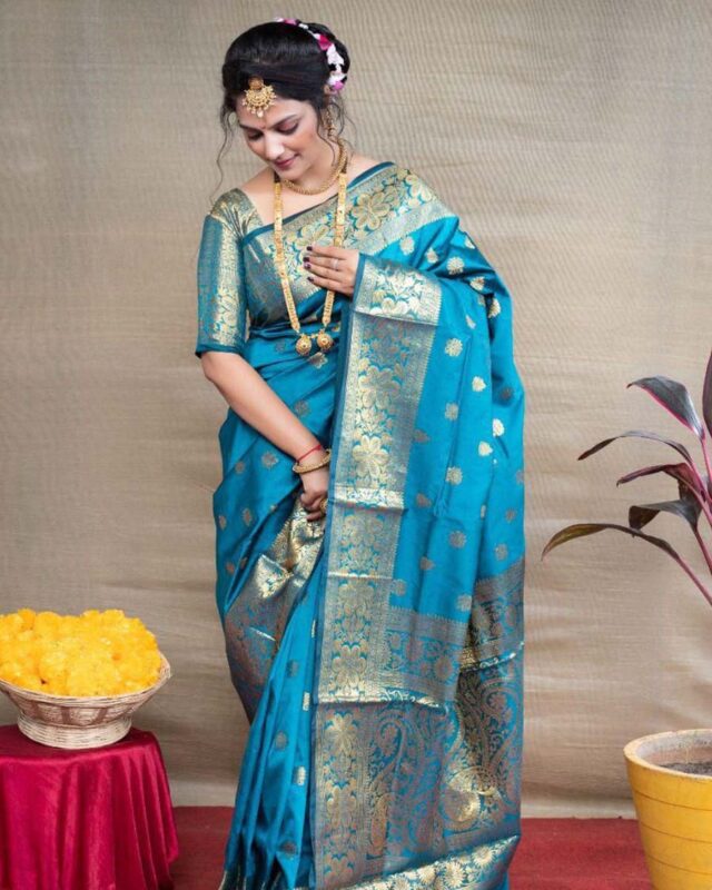 Blue Color New Design Soft Banarasi Silk Saree with Golden Zari Work